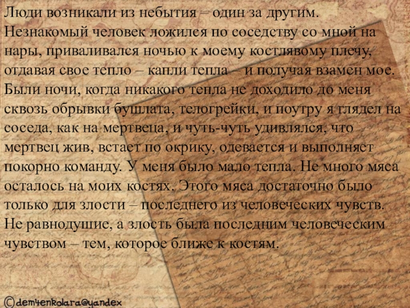 Слайд 13Люди возникали из небытия – один за другим. Незнакомый человек ложился по