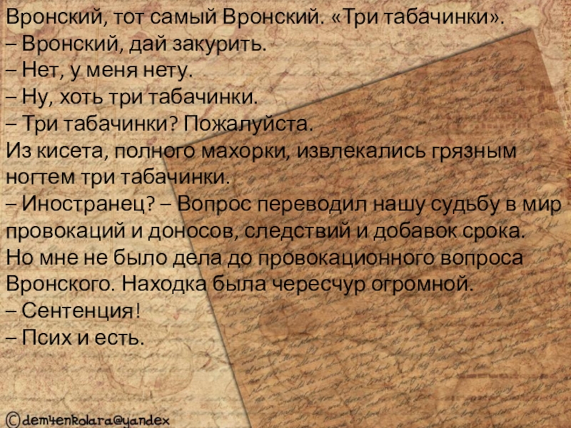 Слайд 27Вронский, тот самый Вронский. «Три табачинки».