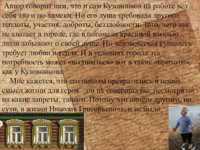 Слайд 49 Автор говорит нам, что и сам Кузовников на работе вел себя