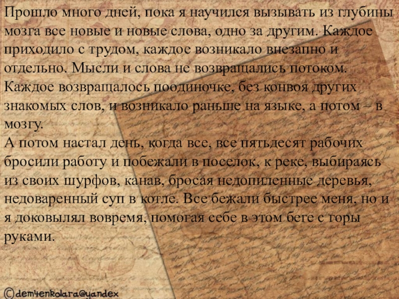 Слайд 30Прошло много дней, пока я научился вызывать из глубины мозга все