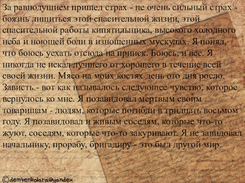 Слайд 21За равнодушием пришел страх - не очень сильный страх - боязнь