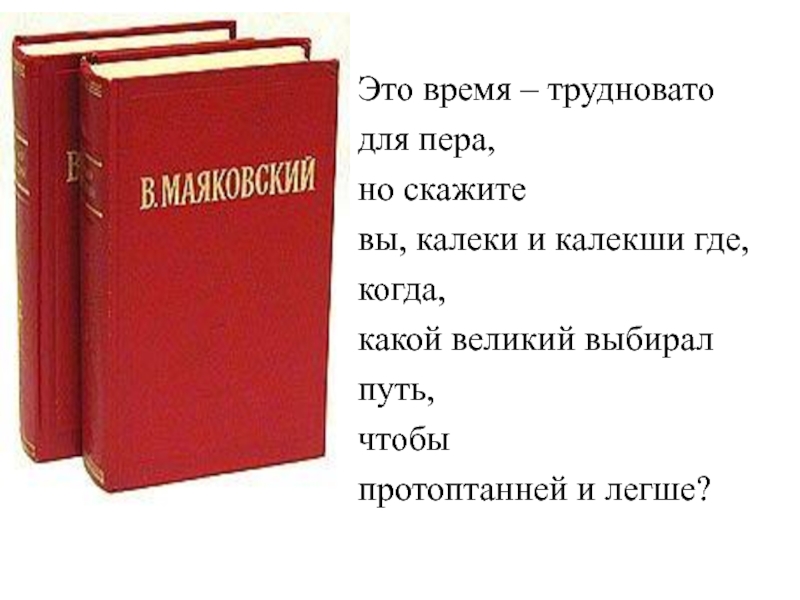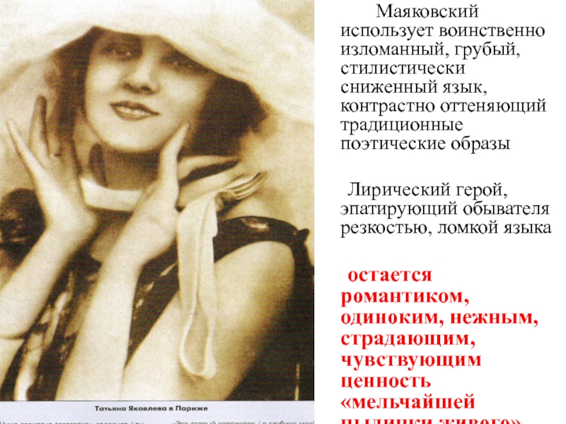 Слайд 18 Маяковский использует воинственно изломанный, грубый, стилистически сниженный язык, контрастно оттеняющий традиционные