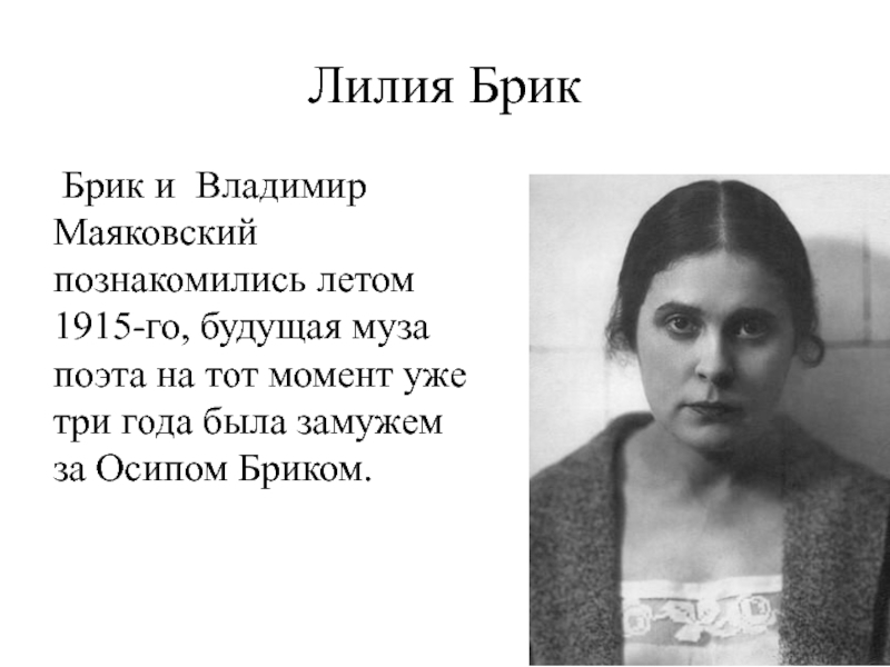 Брик и Владимир Маяковский познакомились летом 1915-го, будущая муза поэта