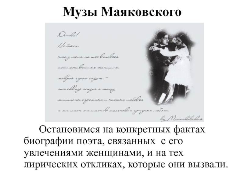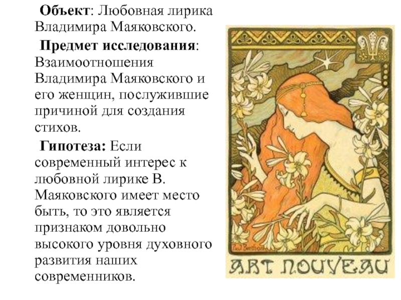 Слайд 4 Объект: Любовная лирика Владимира Маяковского.