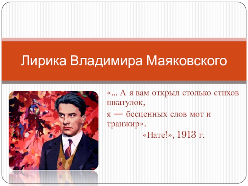 Слайд 5Стихотворение Маяковского «Нате!» (1913) – одно из самых ярких и характерных
