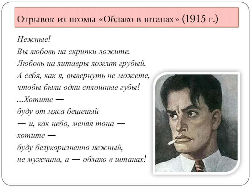 Слайд 9Отрывок из поэмы «Облако в штанах» (1915 г.)