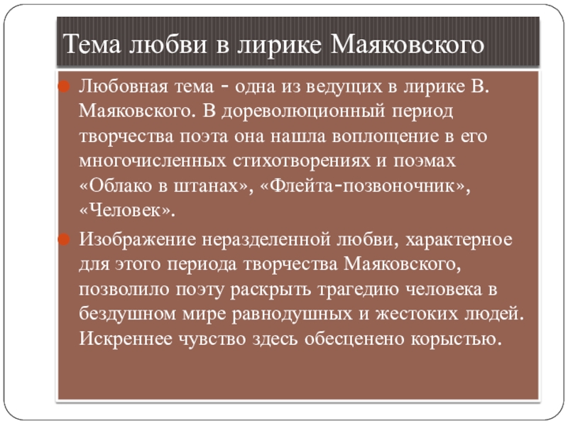 Слайд 8Тема любви в лирике Маяковского