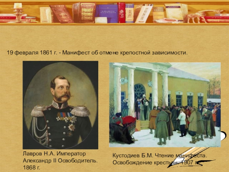 19 февраля 1861 г. - Манифест об отмене крепостной зависимости.