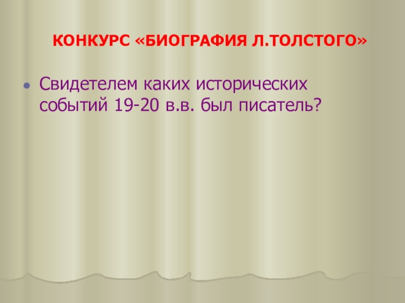 Слайд 8 КОНКУРС «БИОГРАФИЯ Л.ТОЛСТОГО»