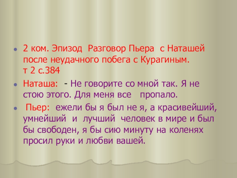 Слайд 372 ком. Эпизод Разговор Пьера с Наташей после неудачного побега с