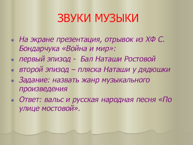 На экране презентация, отрывок из ХФ С. Бондарчука «Война и
