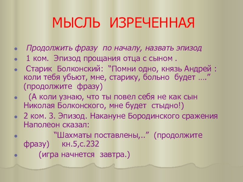 2 ком. 3. Эпизод. Накануне Бородинского сражения Наполеон сказал:
