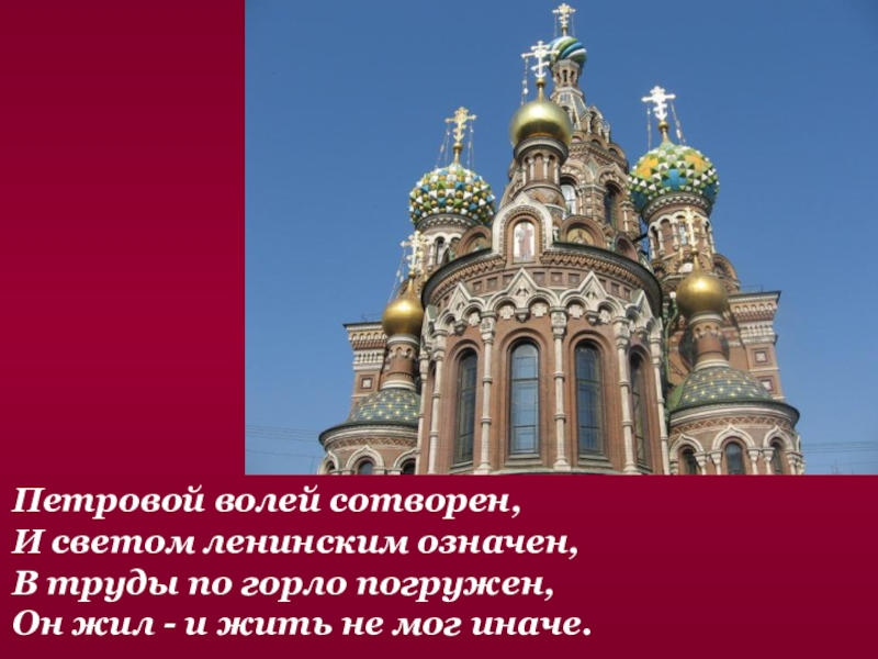 Слайд 6Петровой волей сотворен, И светом ленинским означен, В труды по горло