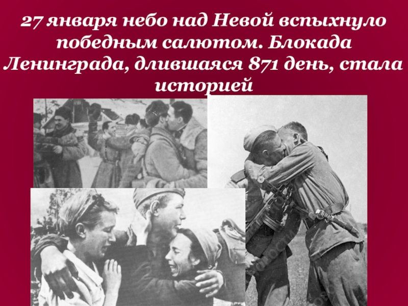 Слайд 3627 января небо над Невой вспыхнуло победным салютом. Блокада Ленинграда, длившаяся