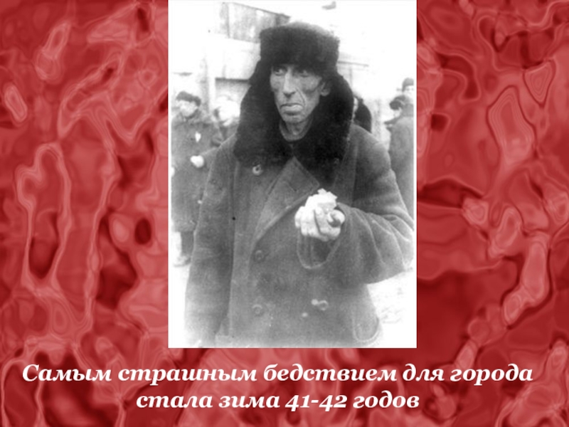 Слайд 21Самым страшным бедствием для города стала зима 41-42 годов