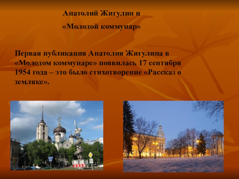 Первая публикация Анатолия Жигулина в «Молодом коммунаре»