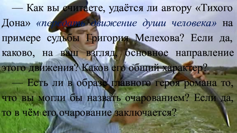 — Как вы думаете, в чём трагедия Григория Мелехова?