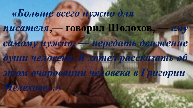 — передать движение души человека. Я хотел рассказать об этом очаровании человека в Григории Мелехове...»