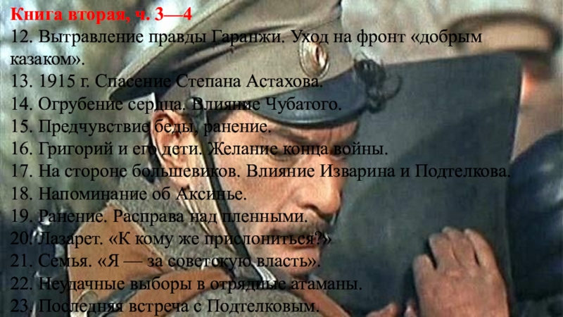 Слайд 4Примерный сюжетный план «Судьба Григория Мелехова»