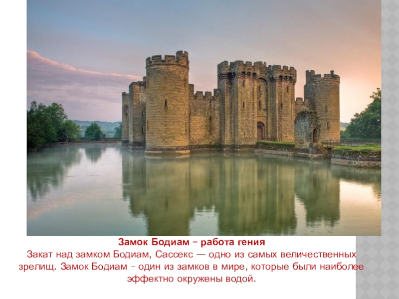 из самых величественных зрелищ. Замок Бодиам – один из замков в мире, которые были наиболее эффектно окружены водой.