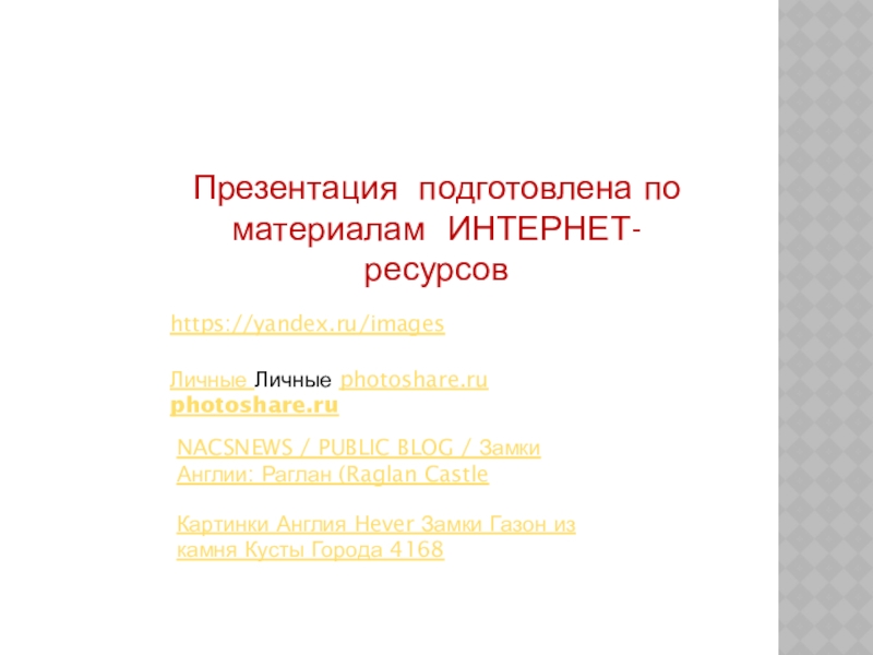 Слайд 18Презентация подготовлена по материалам ИНТЕРНЕТ- ресурсов