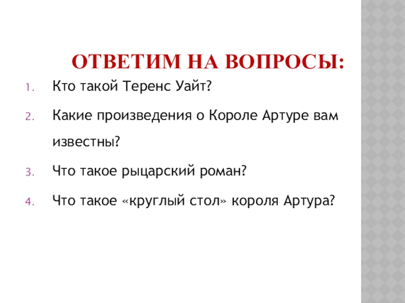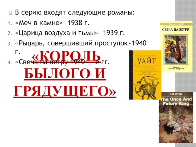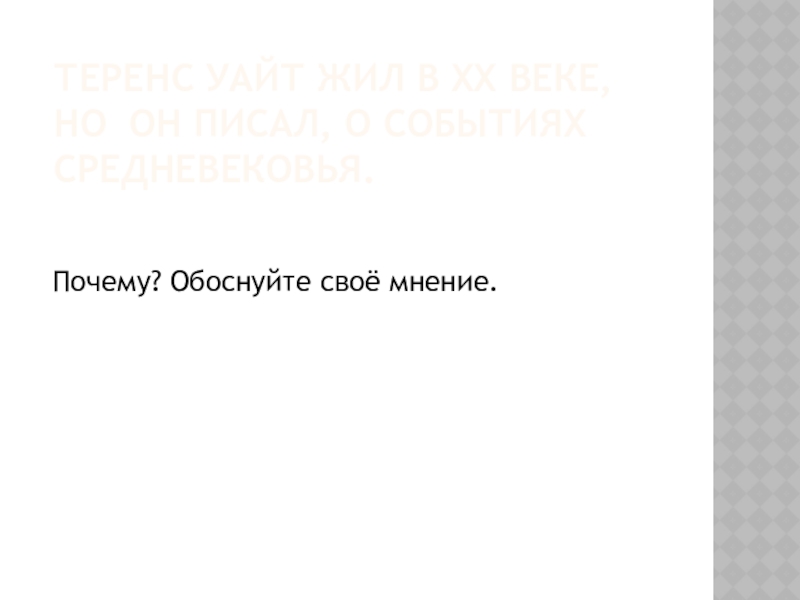ТЕРЕНС УАЙТ ЖИЛ В ХХ ВЕКЕ, НО ОН ПИСАЛ, О СОБЫТИЯХ