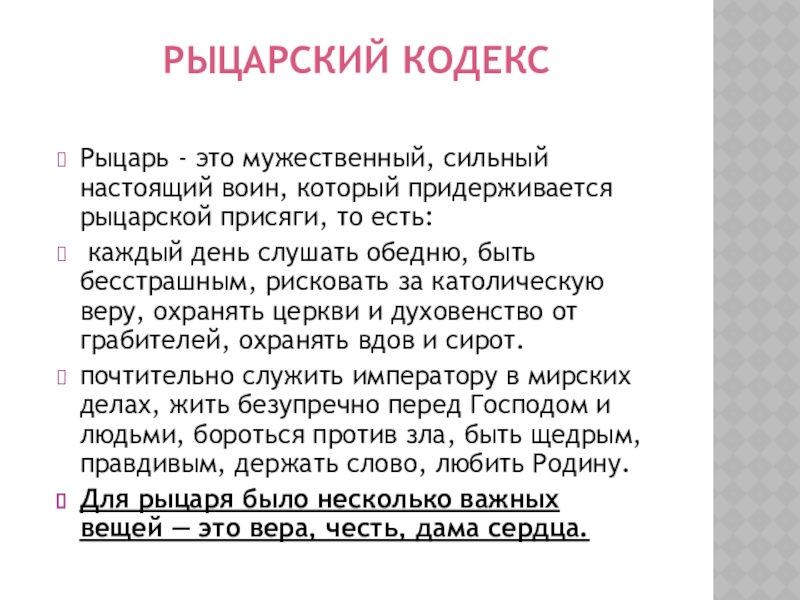 Слайд 13РЫЦАРСКИЙ КОДЕКС