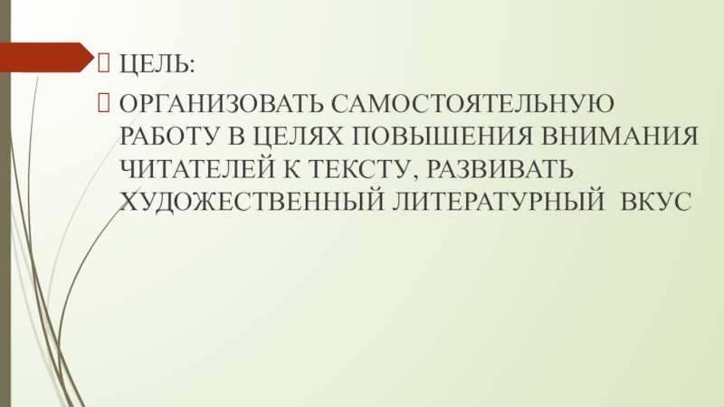 ОРГАНИЗОВАТЬ САМОСТОЯТЕЛЬНУЮ РАБОТУ В ЦЕЛЯХ ПОВЫШЕНИЯ ВНИМАНИЯ ЧИТАТЕЛЕЙ К ТЕКСТУ,