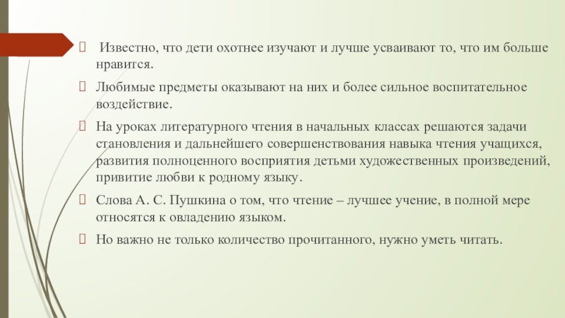 Слова А. С. Пушкина о том, что чтение – лучшее учение, в полной мере относятся к овладению языком.