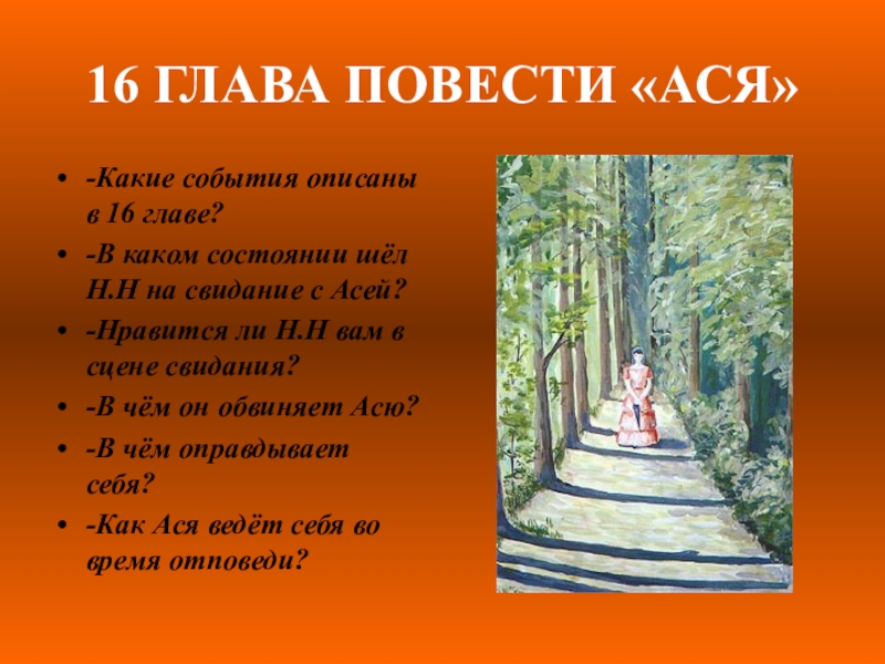 Слайд 916 ГЛАВА ПОВЕСТИ «АСЯ»