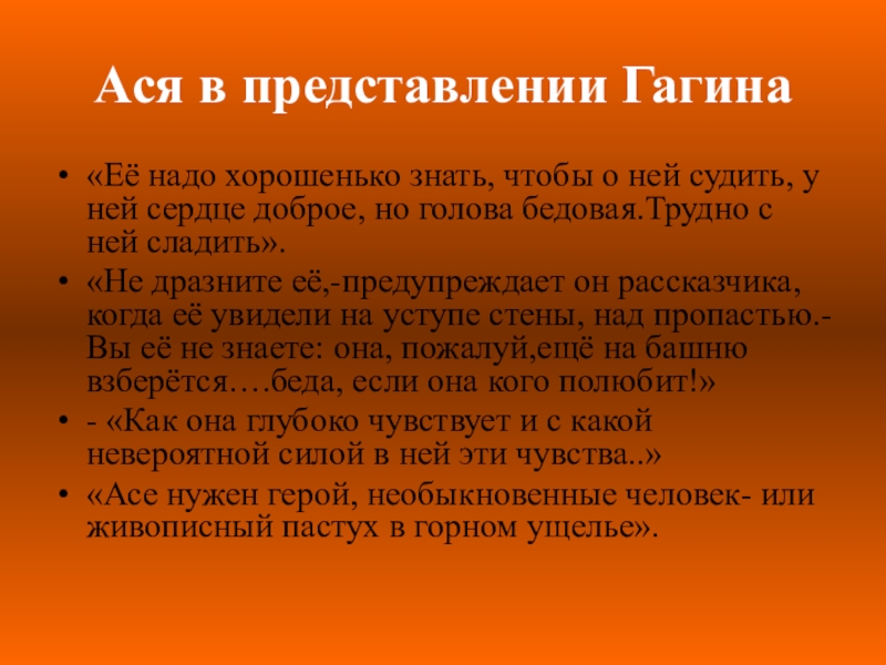 «Асе нужен герой, необыкновенные человек- или живописный пастух в горном ущелье».