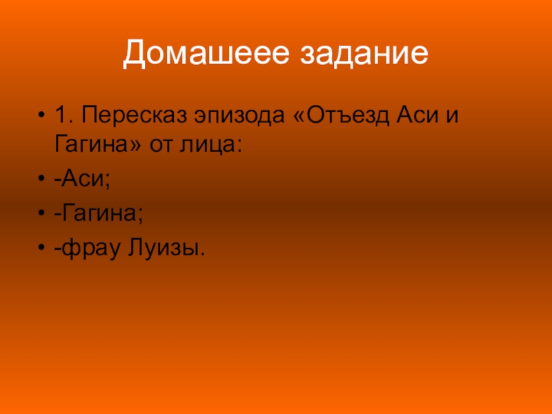 1. Пересказ эпизода «Отъезд Аси и Гагина» от лица: