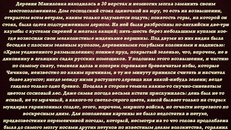 Слайд 6Деревня Маниловка находилась в 30 верстах и немногих могла заманить своим
