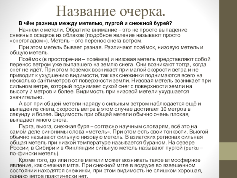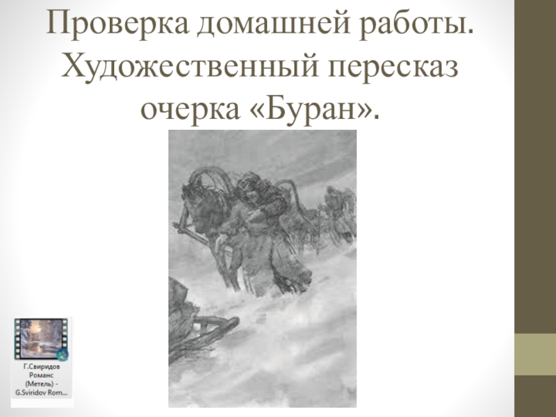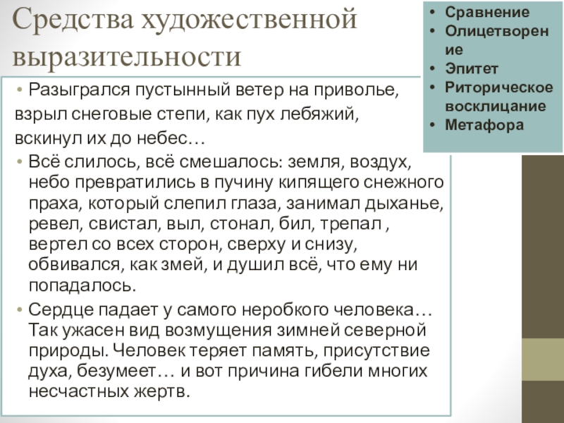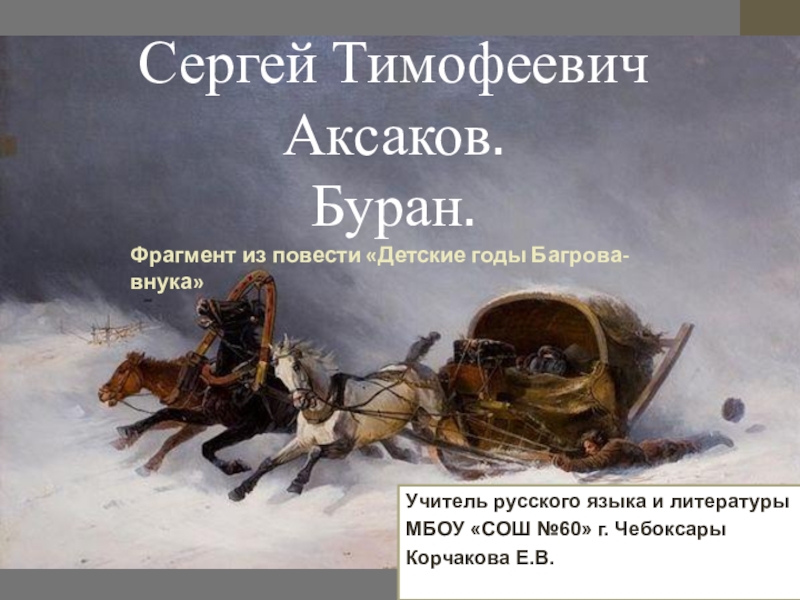 и природы. Рассказ «Буран» был написан Аксаковым со слов очевидцев, переживших страшную бурю в оренбургской степи. Впервые его опубликовали в1834 году. В отрывке из повести очень точно передана снежная буря.