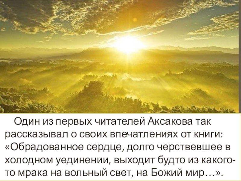 Слайд 25 Один из первых читателей Аксакова так рассказывал о своих впечатлениях от