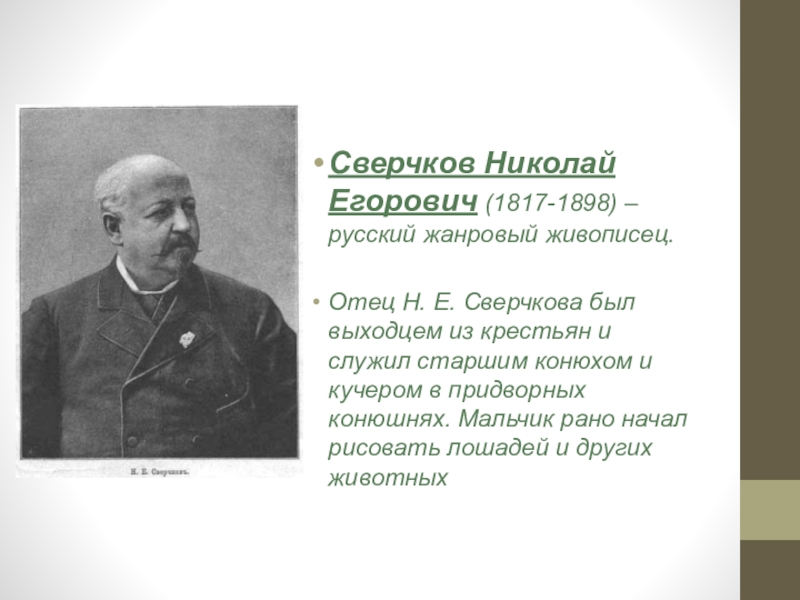 Слайд 14Сверчков Николай Егорович (1817-1898) – русский жанровый живописец.