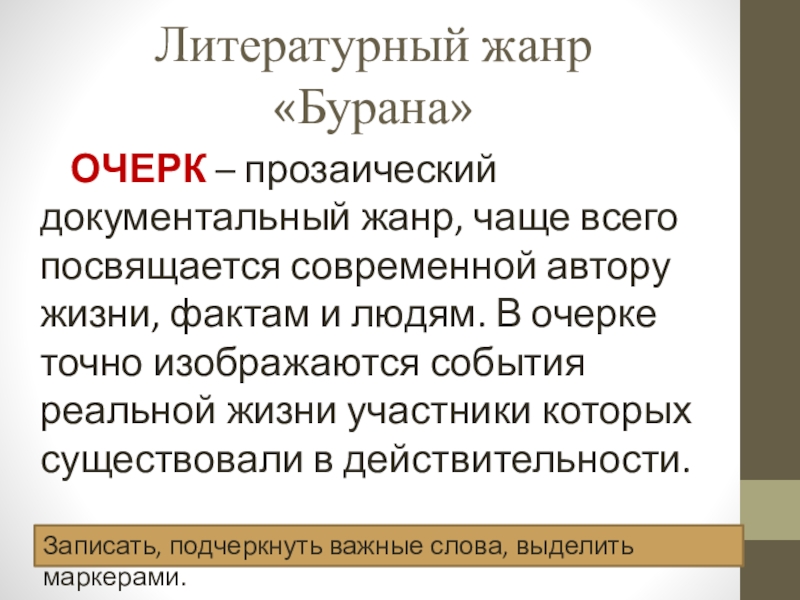 ОЧЕРК – прозаический документальный жанр, чаще всего посвящается современной