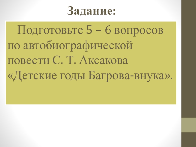 Подготовьте 5 – 6 вопросов по автобиографической повести С. Т.