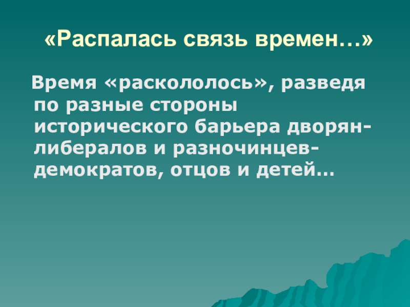 дворян-либералов и разночинцев-демократов, отцов и детей…