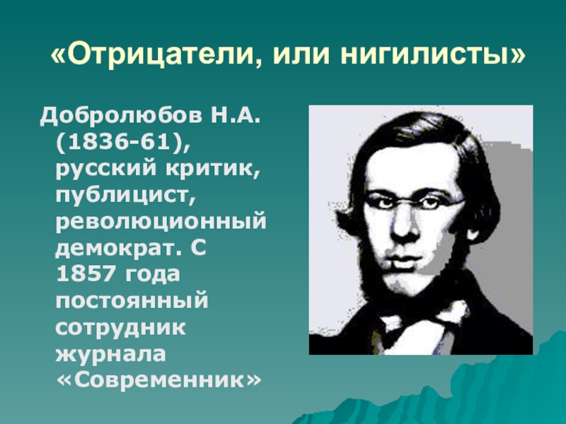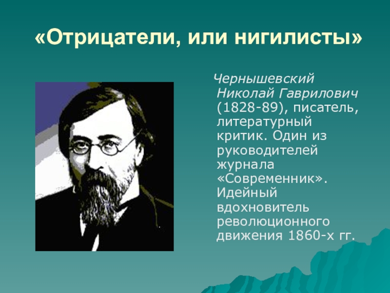 из руководителей журнала «Современник».Идейный вдохновитель революционного движения 1860-х гг.