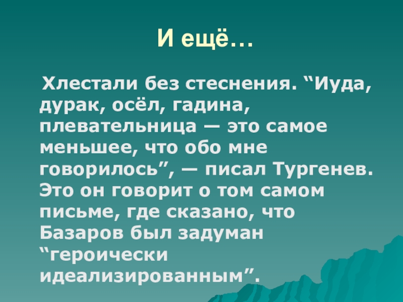 Слайд 3«Ну и досталось же ему за Базарова...» Ф.М.Достоевский
