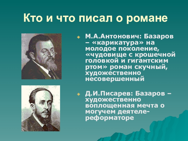 М.А.Антонович: Базаров – «карикатура» на молодое
