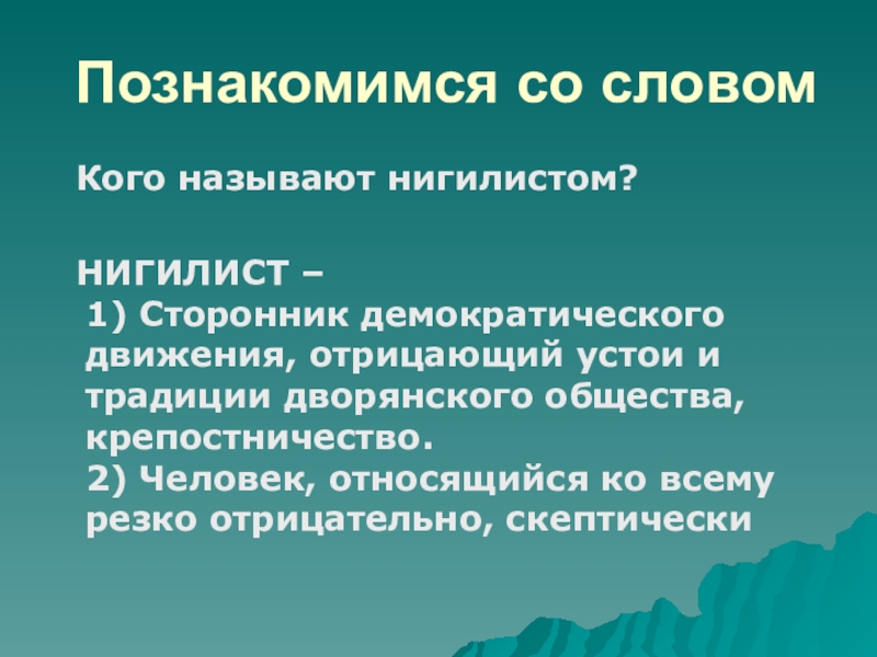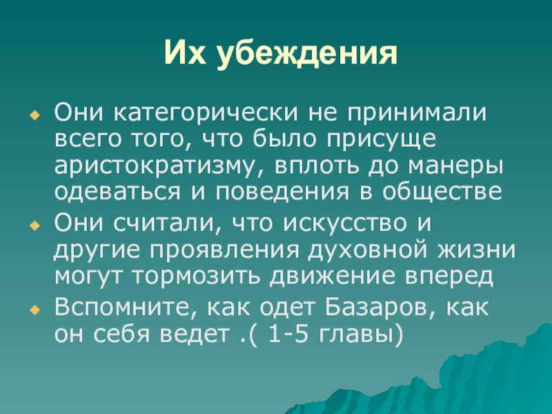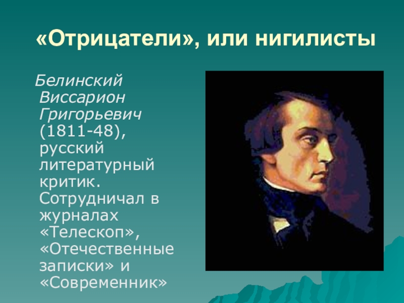 движения, отрицающий устои и традиции дворянского общества, крепостничество.