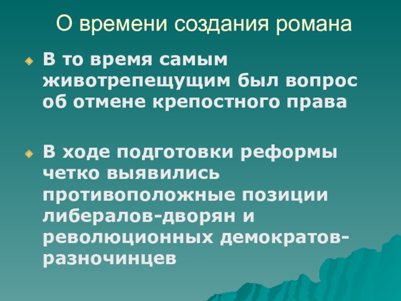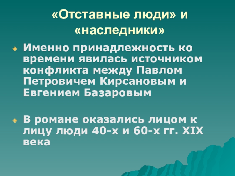 В романе оказались лицом к лицу люди 40-х и 60-х гг. XIX века