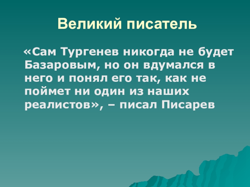 Цитата из статьи И.С.Тургенева « По поводу отцов и детей» 1869