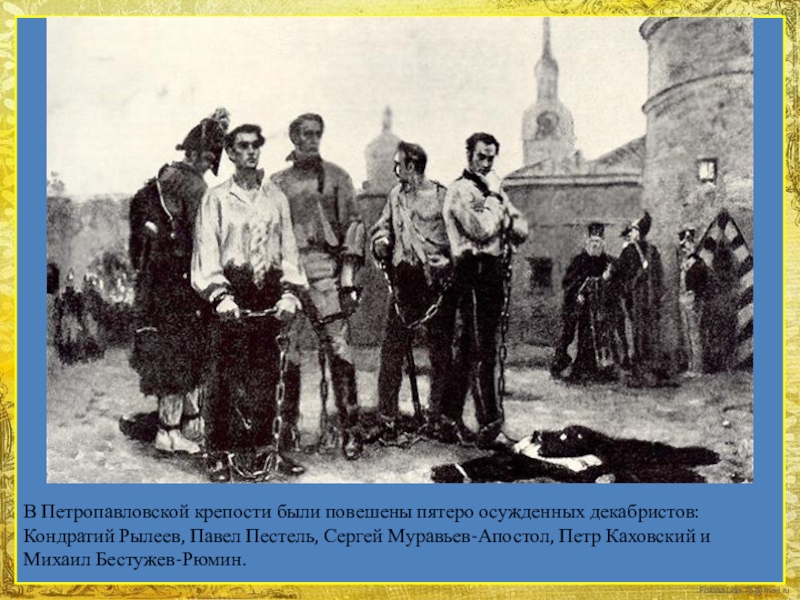 Слайд 6В Петропавловской крепости были повешены пятеро осужденных декабристов: