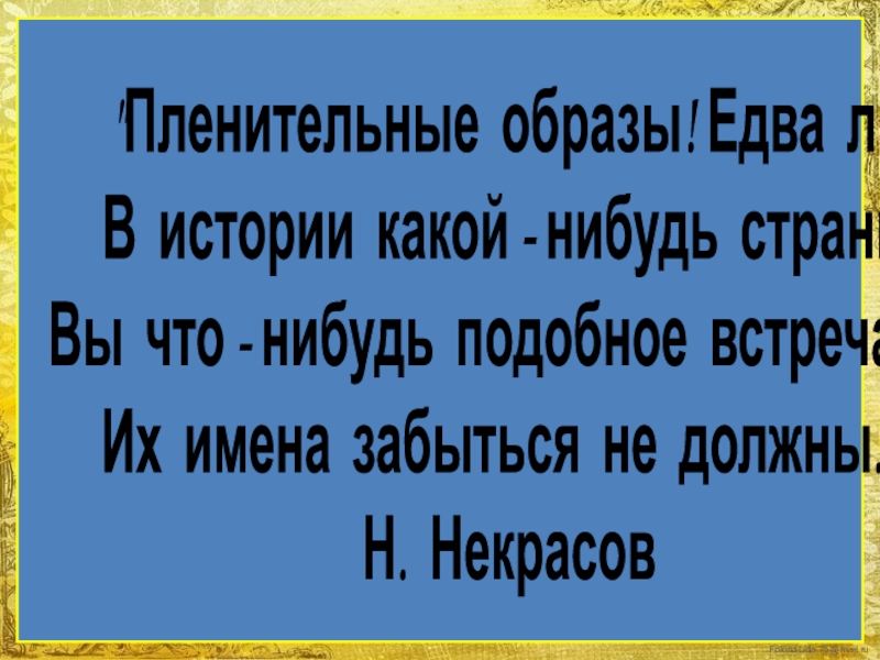 Презентация, доклад на тему Поэма Н.А. Некрасова Русские женщины: Княгиня Трубецкая. Величие духа русской женщины.