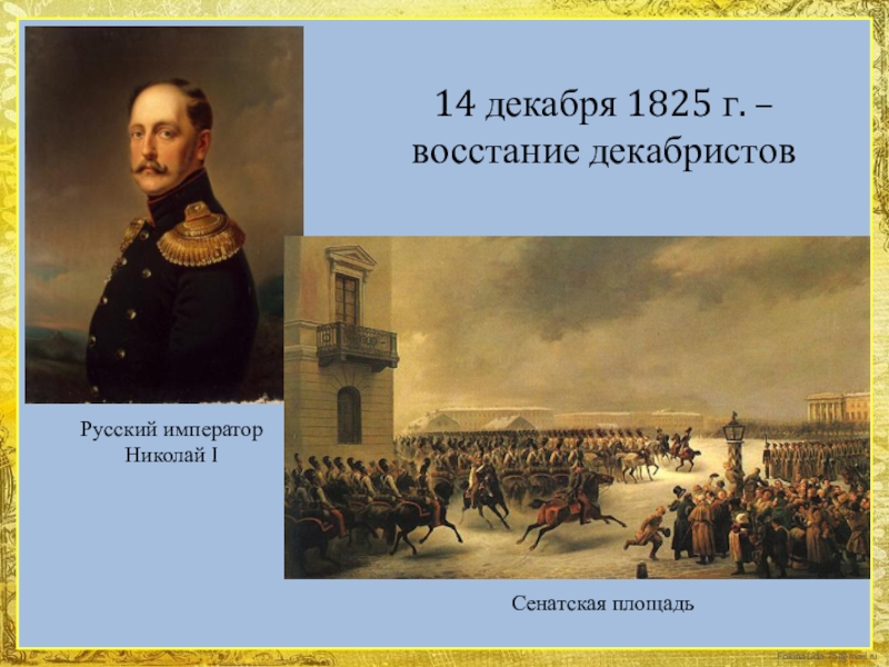 Русский император Николай I 14 декабря 1825 г. – восстание декабристовСенатская площадь