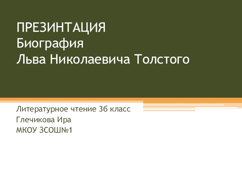 ПРЕЗИНТАЦИЯ Биография  Льва Николаевича ТолстогоЛитературное чтение 3б классГлечикова ИраМКОУ ЗСОШ№1