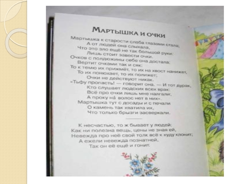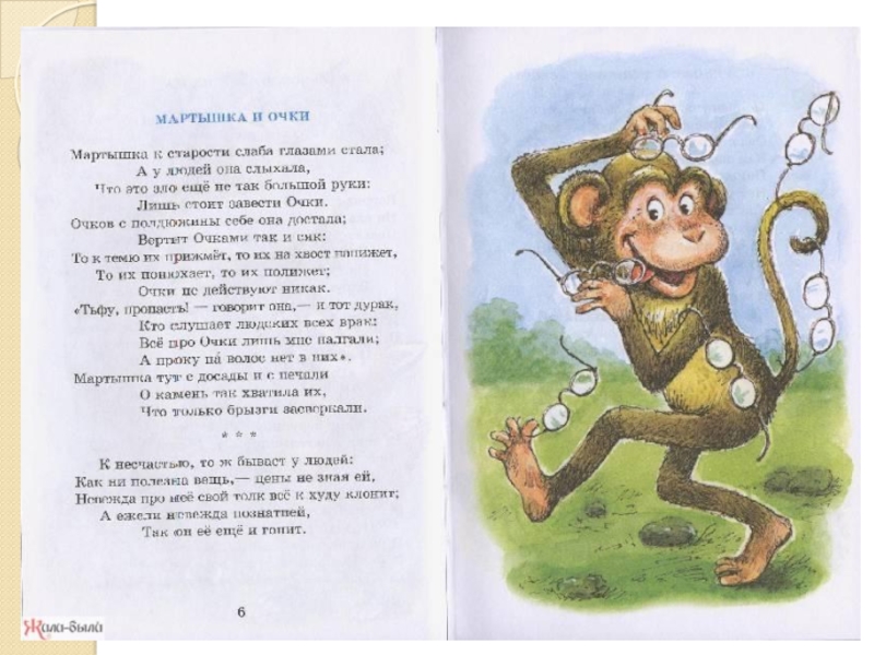 Презентация Чтение басни И. А. Крылова «Мартышка и очки»